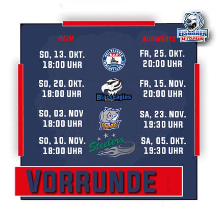 Nun ist es offiziell. Wir starten bereits am 5. Oktober - unserer erstes Auswärtsspiel führt uns mal wieder in die Ege-Trans Arena zum bisherigen Regionalligisten Bietigheim. Mit einem Heimspiel gegen die 1b des Heilbronner EC eine Woche darauf starten wir im heimischen Icehouse. Bis 10. November empfangen wir unsere vier Gruppengegner im Icehouse, ehe an den beiden folgenden Wochenenden die letzten Rückspiele anstehen - mit dem "Highlight" Baden-Airpark am Samstag den 23. November. Kein leichtes Unterfangen - aber die Jungs sind heiß aufs Eis und wollen den dritten Platz anpeilen, der die Teilnahme an der Meisterschaftsendrunde ermöglicht.