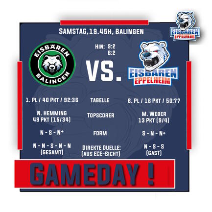 Doch unsere Eisbären wollen gerne zum Partycrasher werden. Die Bilanz in Balingen sieht weiterhin positiv aus und auch die aktuelle Form ist ausgeglichen. Nichts desto trotz ist der Gastgeber selbstredend klarer Favorit, bei doppelt so hoher Torausbeute, sowie halb sovielen Gegentreffern steht Balingen zu Recht auf Platz 1.